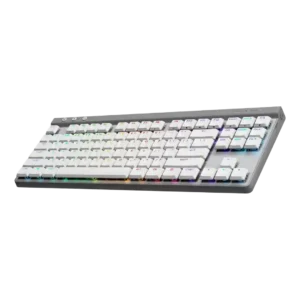 The slim TKL shape, dongle storage, and travel-friendly framing make the keyboard easy to carry and use in tighter spaces.